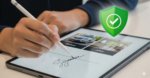 Esta combinación de evidencia visual y firma digital crea un cierre de servicio a prueba de balas.